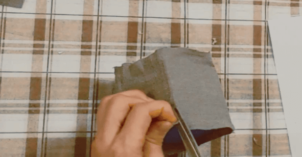 3. 4면을 감싸주었나요? 저처럼 통보다 길게 나온 천 모서리 쪽을 조금씩 잘라주세요.