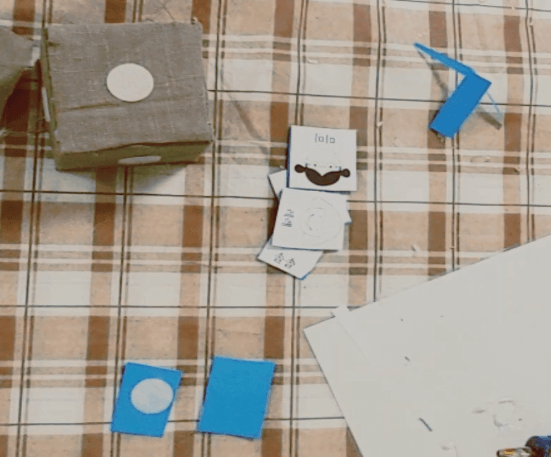 1. 정사각형 빈 통을 준비합니다. 정사각형이면 무엇이든 괜찮습니다. 저는 블록을 이용하겠습니다. 참고로 화장품통처럼 손으로 눌렀을 때 변형될 염려가 있을 경우 통 속에 신문지를 채워 튼튼하게 만들어주세요.